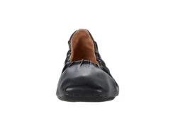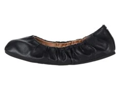 - Slip-on ballet flat with elastic collar and round toe.