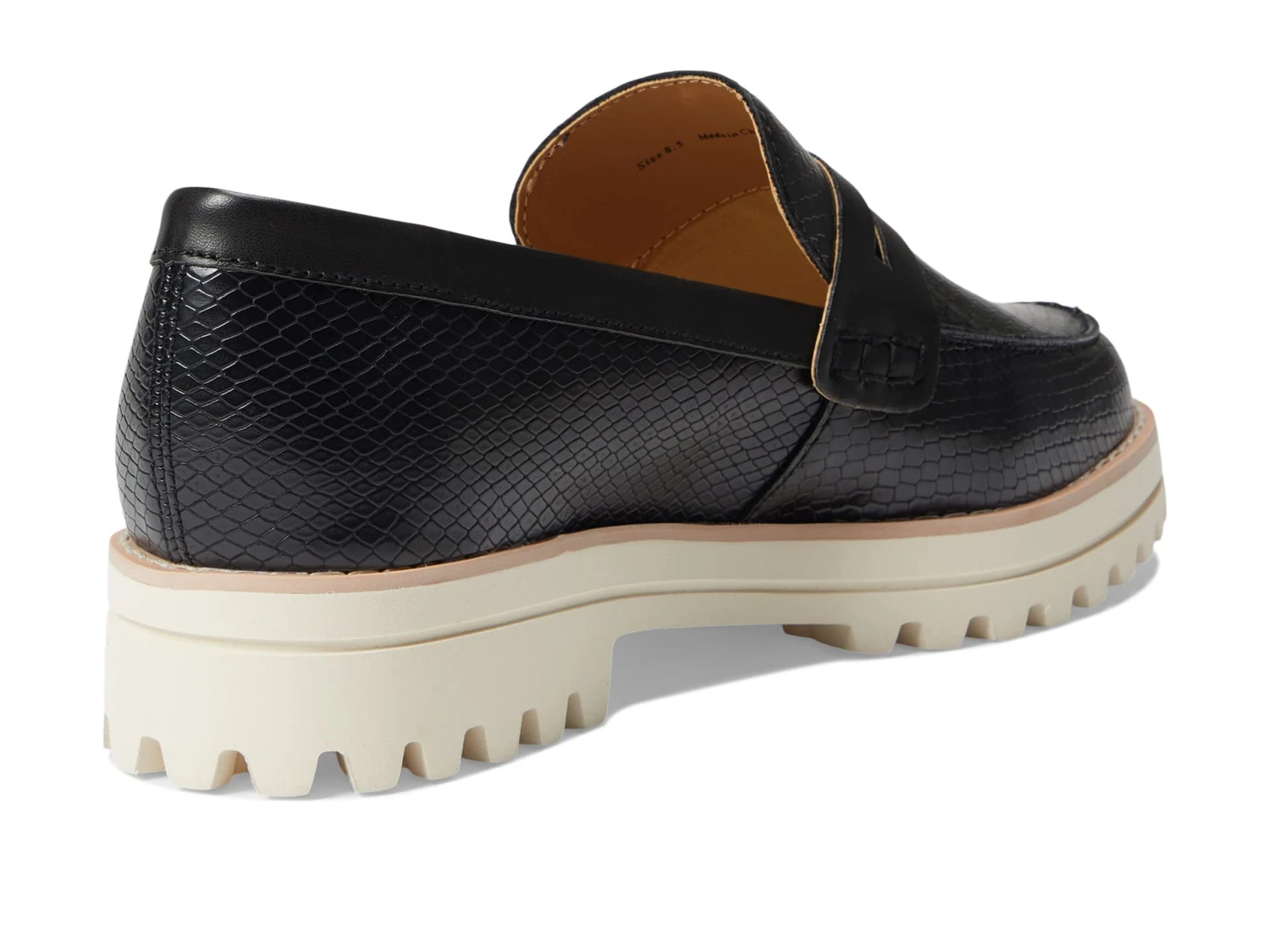 - Snakeskin embossed synthetic upper.