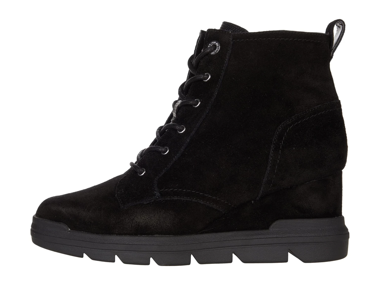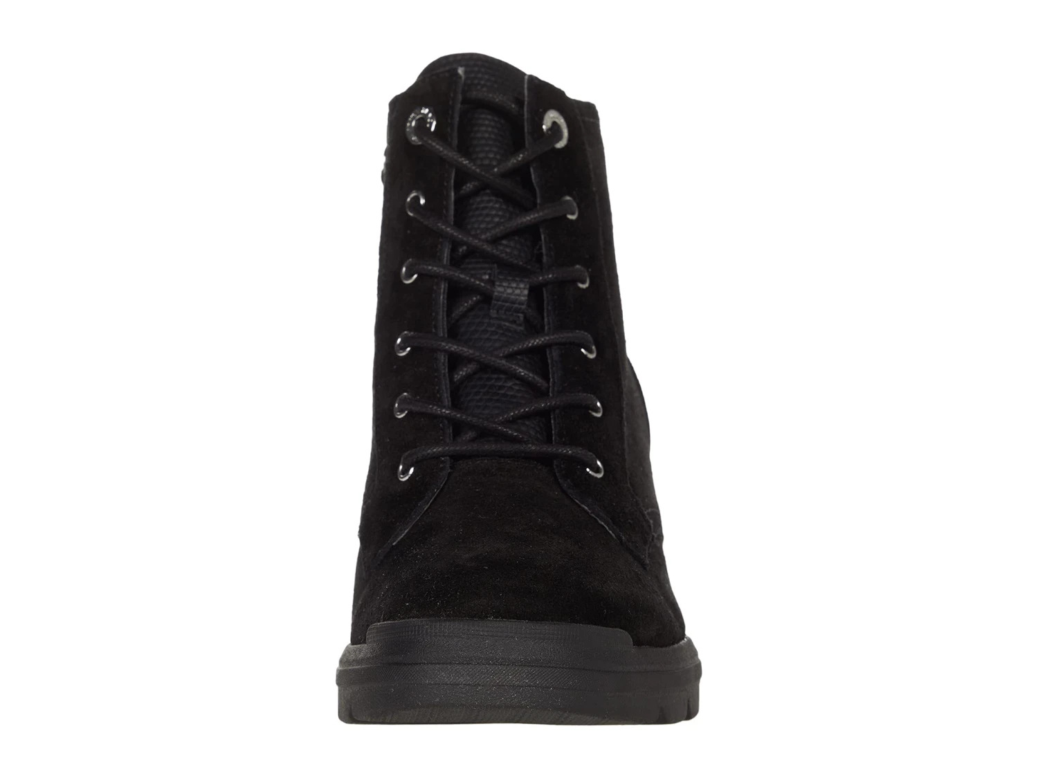 - Traditional lace-up with metal eyelets and side zipper closure offer a secure fit.