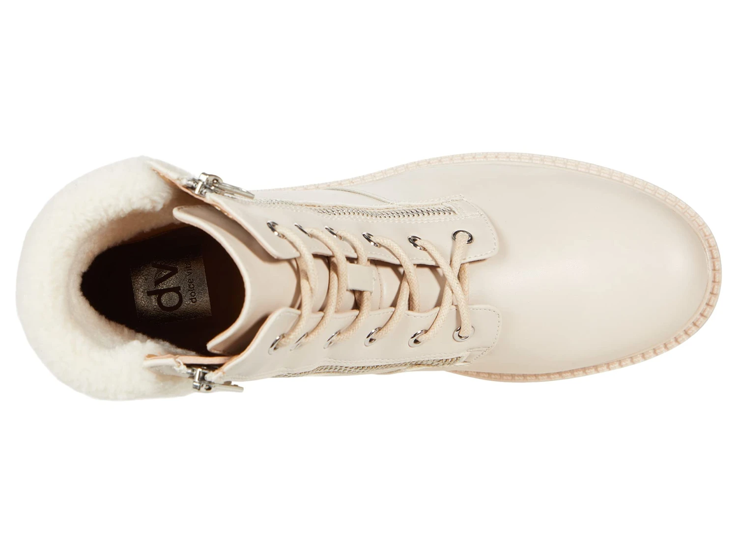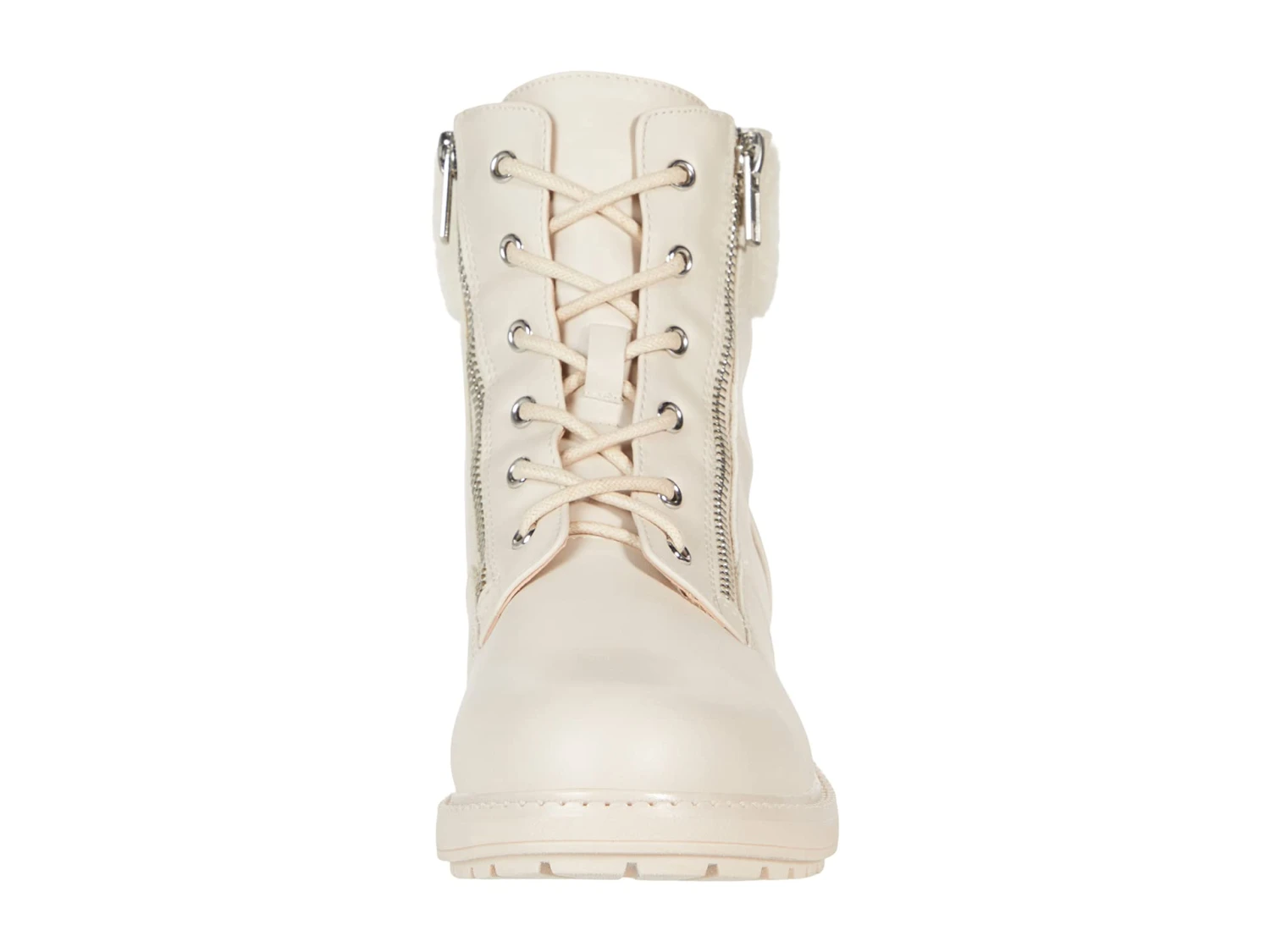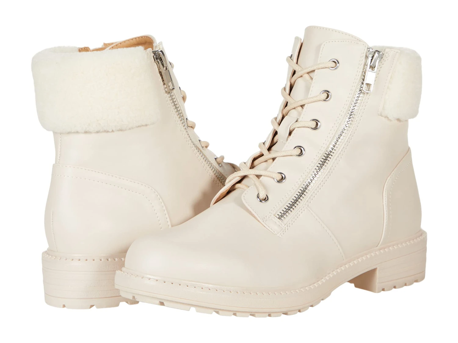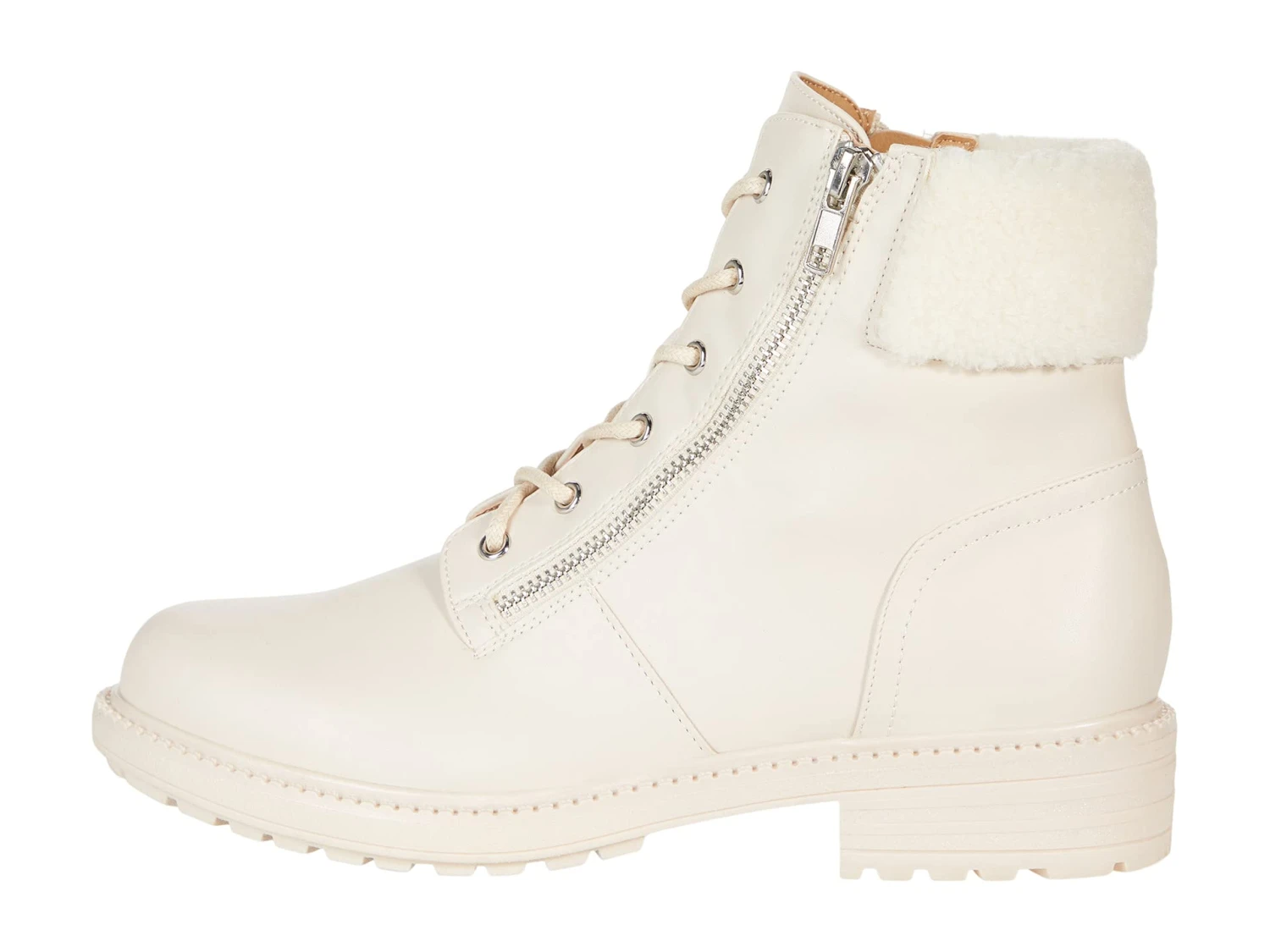 - Faux-leather boot with lace-up vamp and zipper for easy on-and-off access.