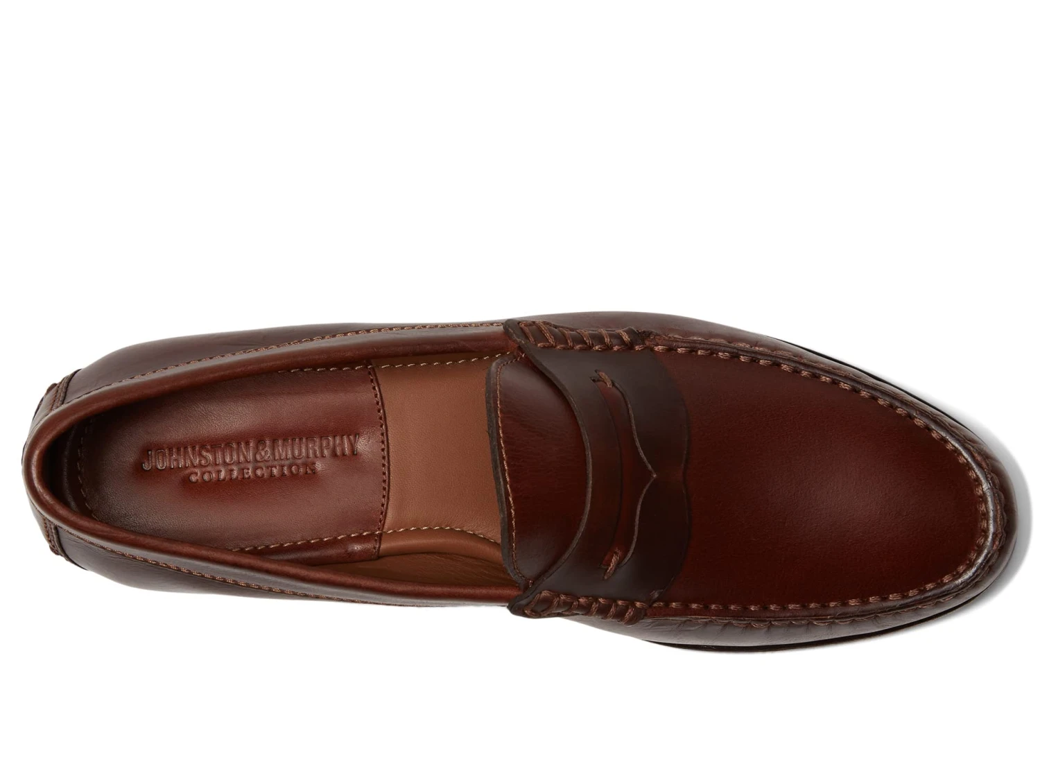 - Create a classic look with the J&M Collection® Baldwin Penny, featuring hand-sewn moccasin construction and genuine leather uppers.