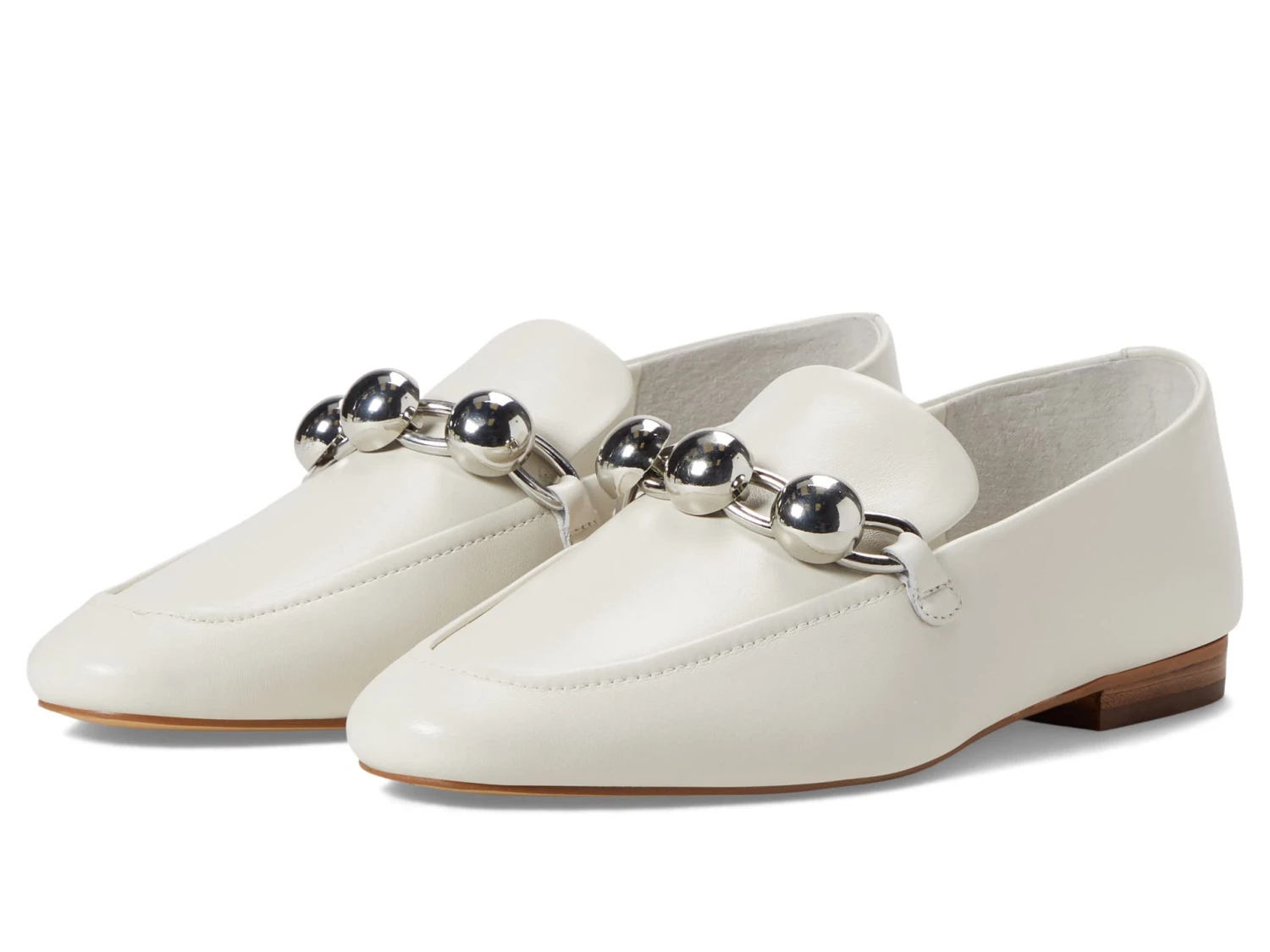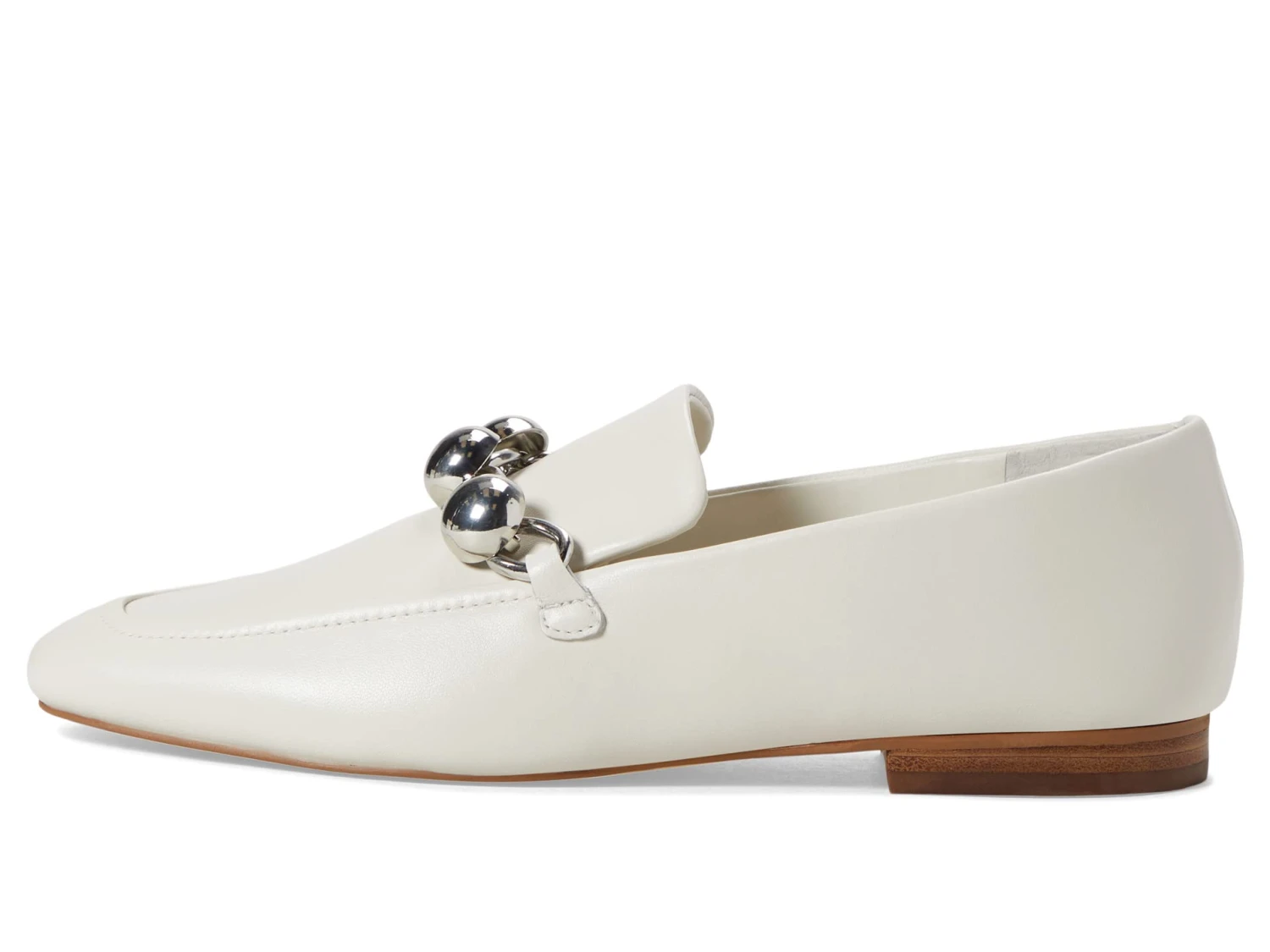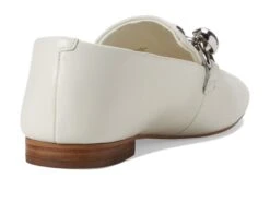 - Leather upper with a glistening metal hardware accent.