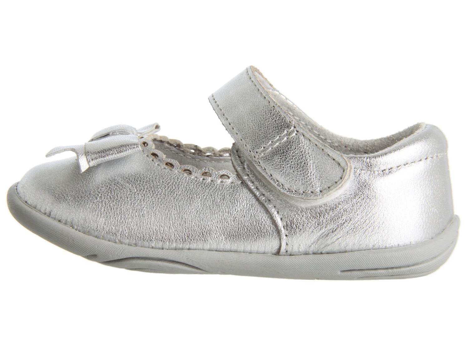 - Leather upper with delicate bow on the front.