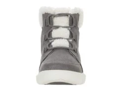 - Suede leather upper with faux textile shearling around collar an on tongue for added comfort.