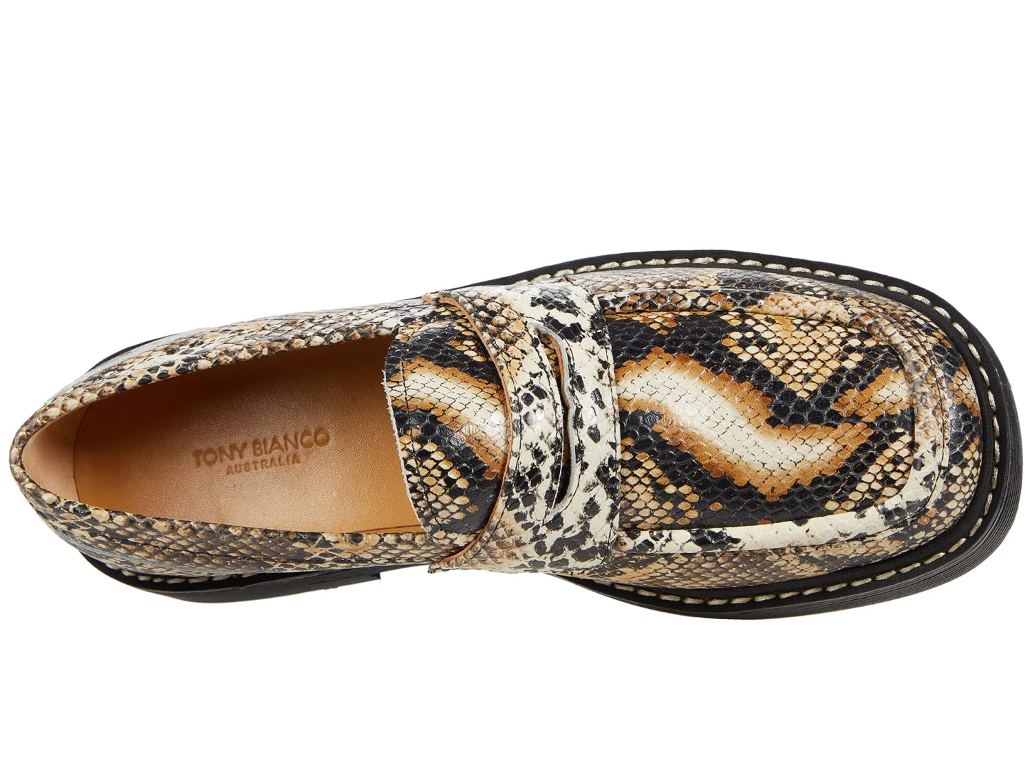 - Pound the pavement of your concrete jungle with the Tony Bianco™ Granite, a platform loafer with snake-printed leather uppers.