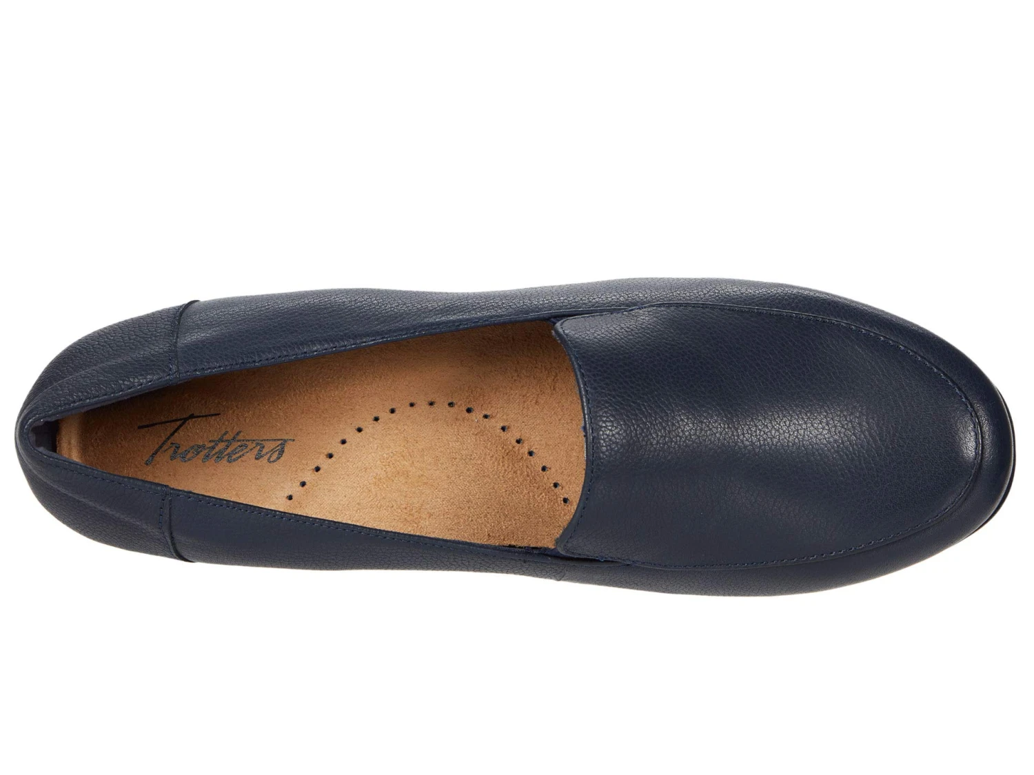 - The Trotters® Deanna slip-on gives you just a little height for being the perfect all-day shoe. Made of leather with dual goring and soft lined and cushioned insole.